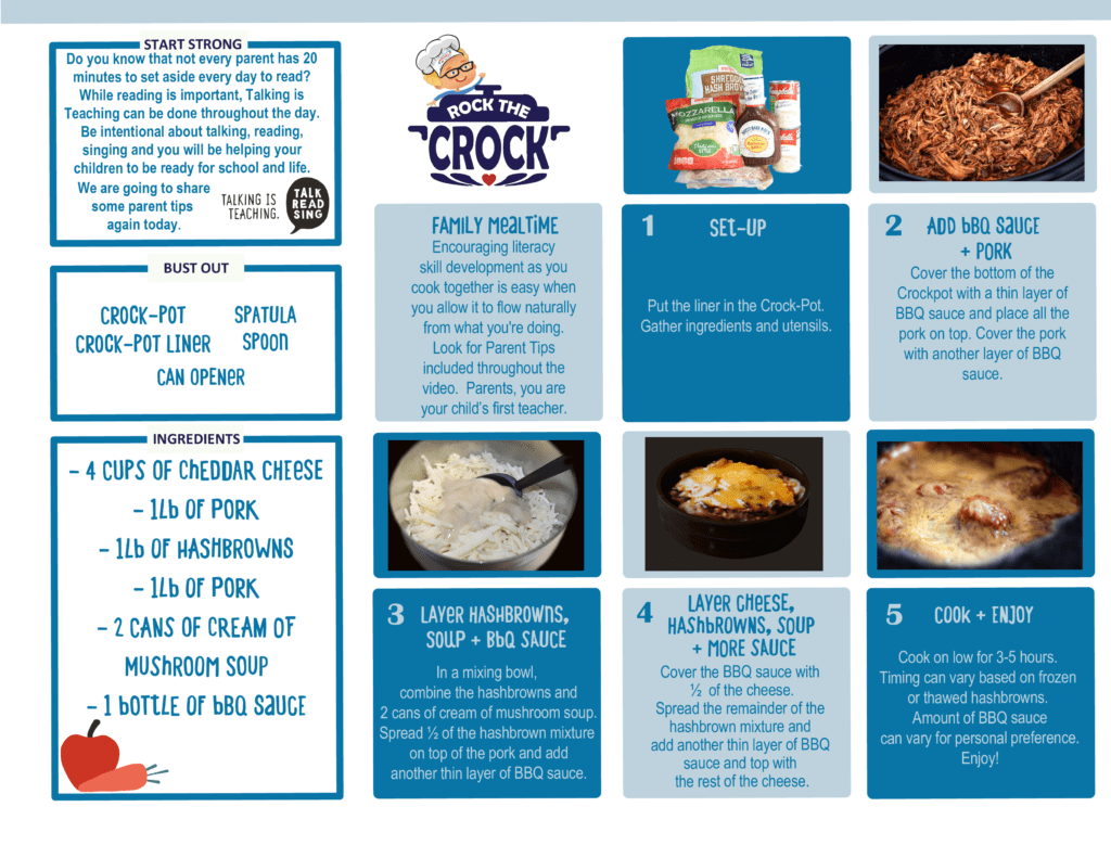 Rock The Crock Recipes Lazy LasagnaTaco CasseroleBBQ Pork CasserolePizza CasseroleChicken & RiceChicken ChiliMac ‘N CheeseChicken Bacon RanchHam & Bean SoupChicken & Dumplings